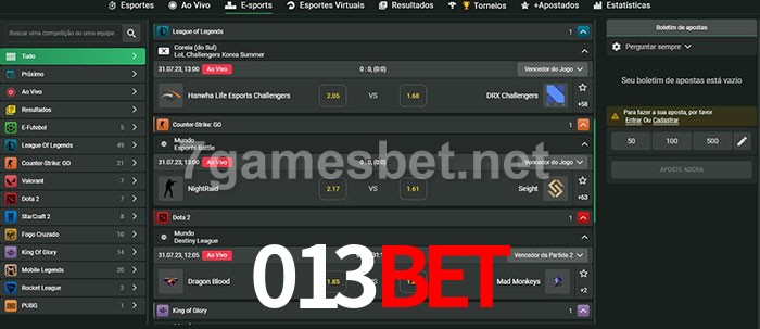 O 013Bet oferece uma grande seleção de opções de apostas em e-sports com probabilidades competitivas